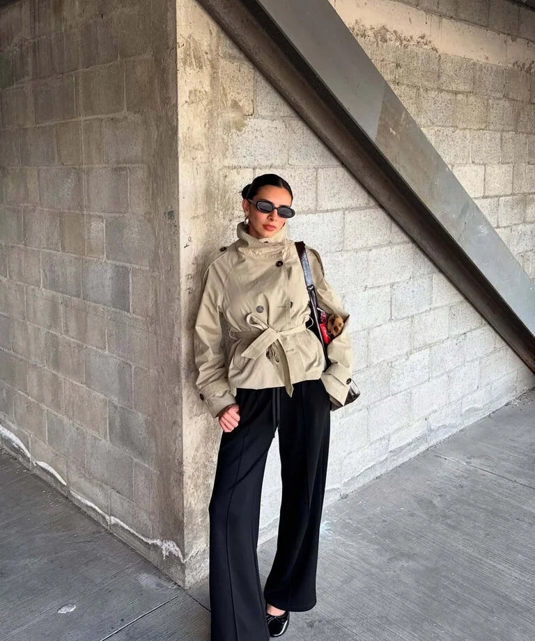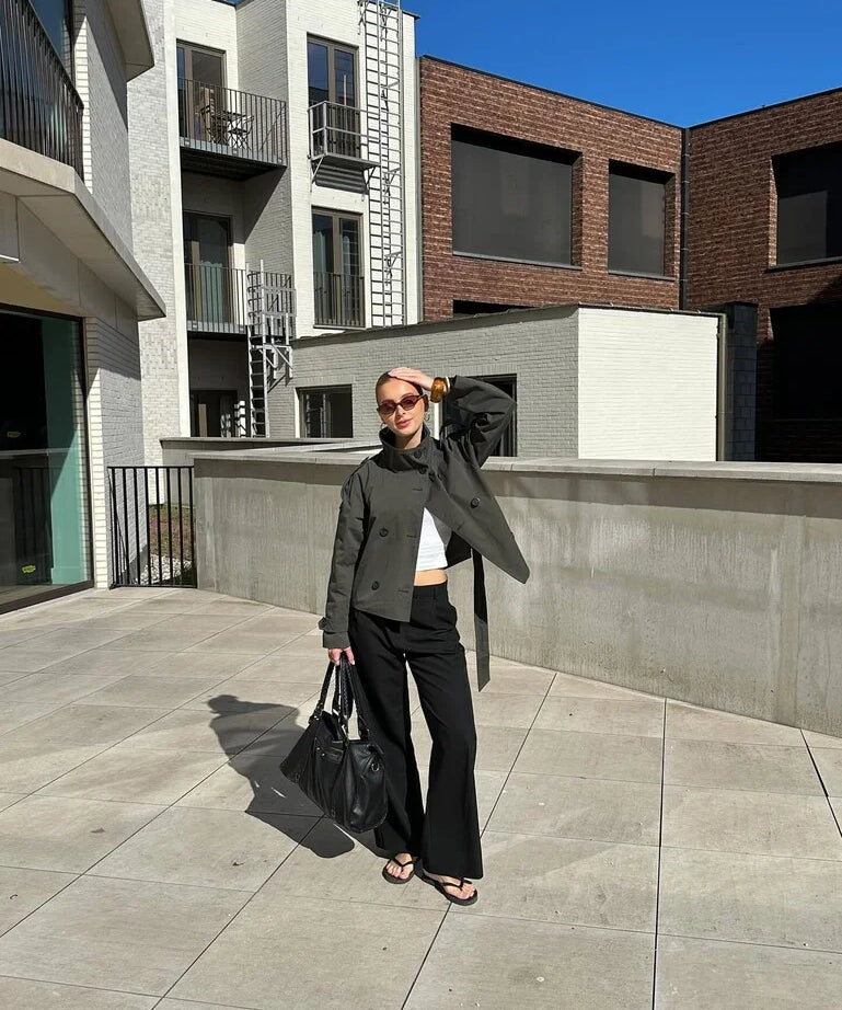 Minimalistisch, aber wirkungsvoll – dieser Trenchcoat ist das perfekte Piece für stilbewusste Frauen, die auf zeitlose Eleganz mit modernem Twist setzen.